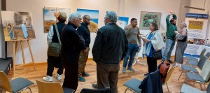 Am Dienstagabend,10. März, waren Hammer Bürgerinnen und Bürger dazu eingeladen, sich aktiv an einer neuen Methode der Bildungsarbeit zu beteiligen. Nicht durch Vorträge, sondern durch die Betrachtung von vier von Naseer Al Shabani umgesetzten Gemälden kamen rund 20 Teilnehmenden mit dem Künstler sowie den drei anwesenden Eine-Welt-Promotoren Bunmi Bolaji, Marcos da Costa Melo und Serge Palasie ins Gespräch.