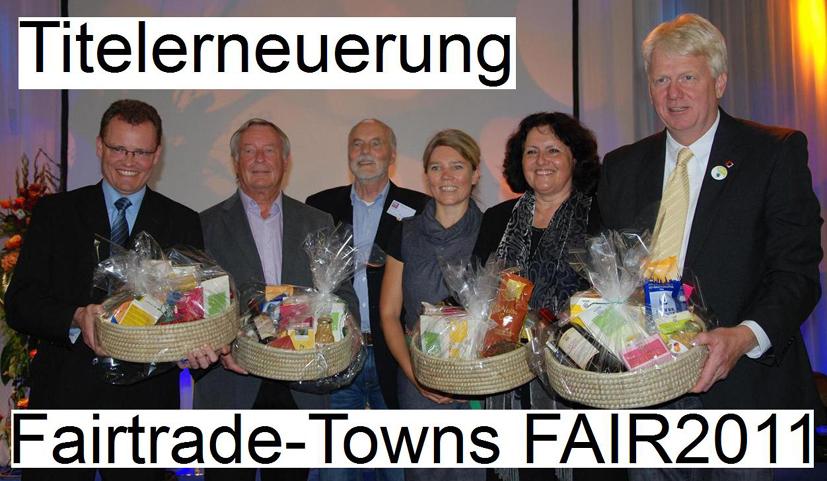 Am 9. September 2011, Freitag, um 16 Uhr, findet auf der Fairen Messe Westfalenhallen DO, Halle 5, die Diskussionsrunde zur Titelerneuerung der vier ersten NRW-Fairtrade-Towns statt. Oberbürgermeister/Bürgermeister aus Dortmund, Dinslaken, Castrop-Rauxel und Neuss sprechen über Auswirkungen der Kampagne „Fairtrade Towns“ für ihre Städte. Seit 2009 können sich auch deutsche Kommunen um den Titel bewerben.