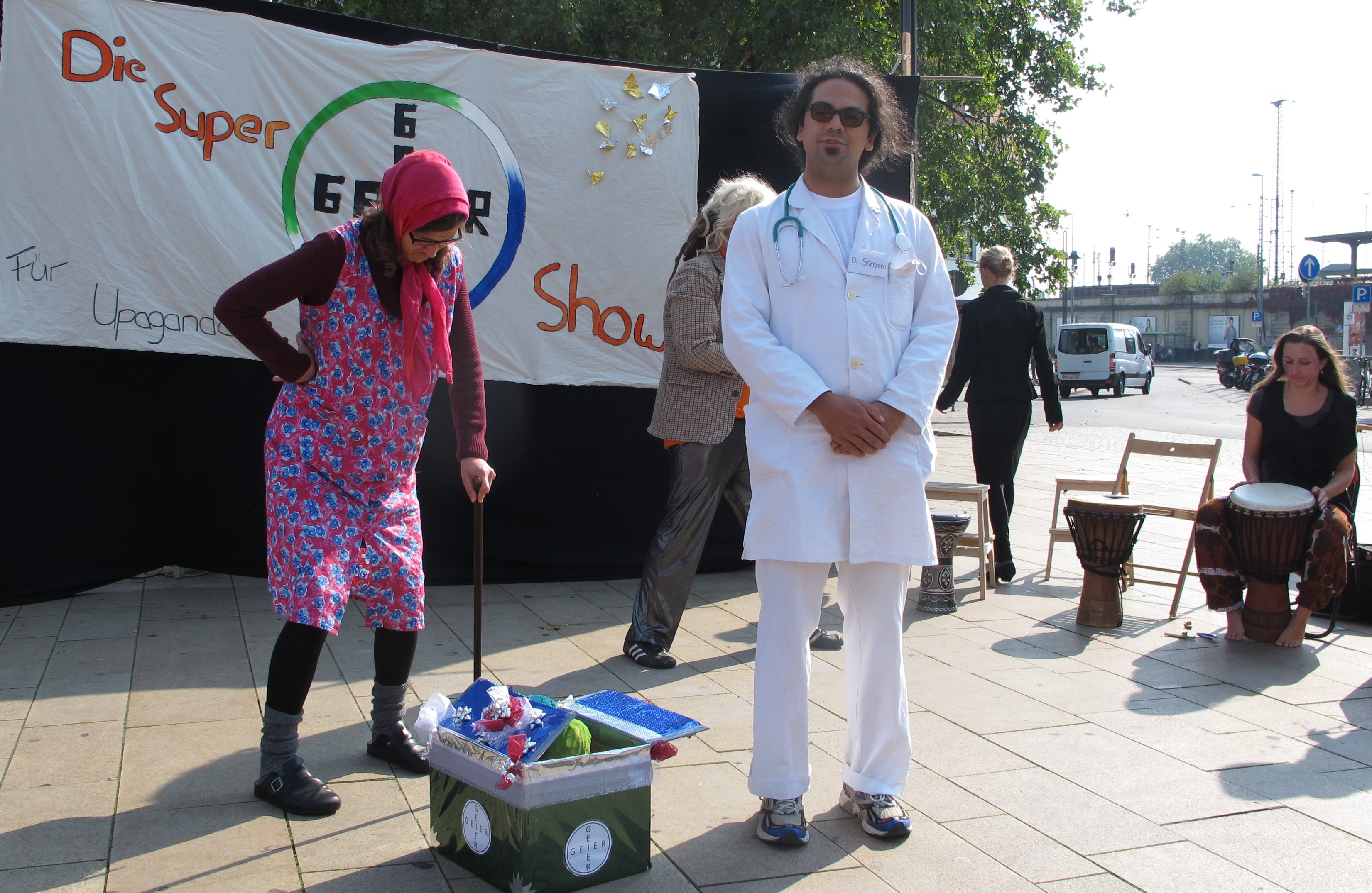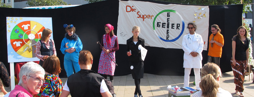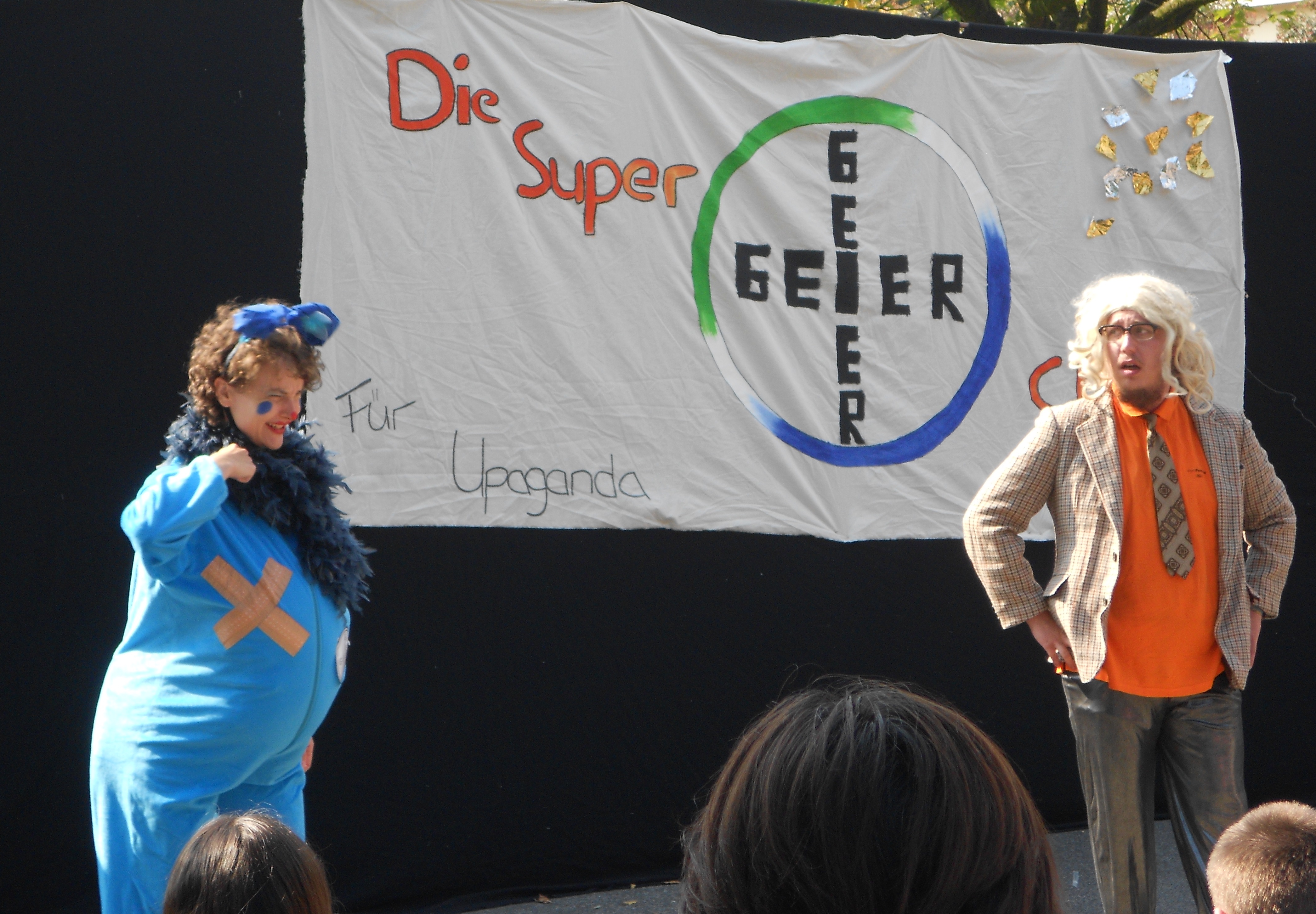 Schwarzer Humor, verrückte Kostüme und dahinter eine brisante politische Botschaft: Schluck & weg der BUKO Pharma-Kampagne macht auf die Missstände in der globalen Arzneimittelversorgung und die Gesundheitsversorgung auch in Uganda aufmerksam.