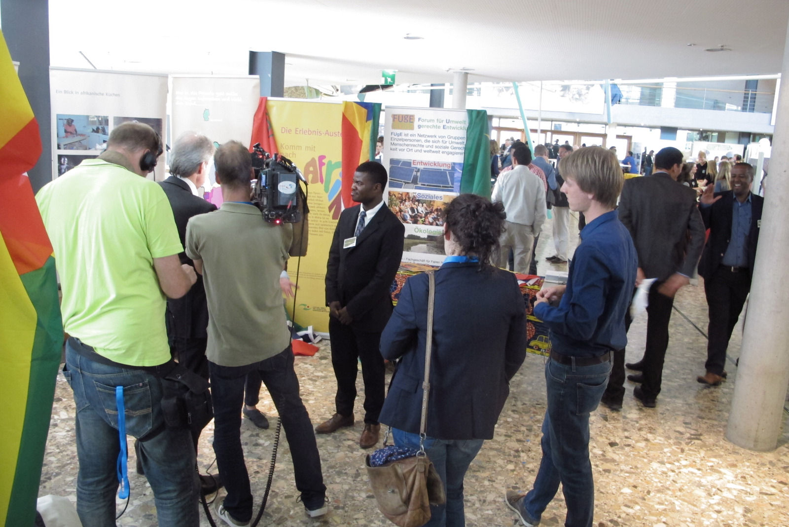 Im Rahmen der ZukunfsTour Bonn zeigt FUgE Hamm im Plenarsaal von WorldCC in Bonn die Mitmach-Ausstellung „Komm mit nach Afrika!“: