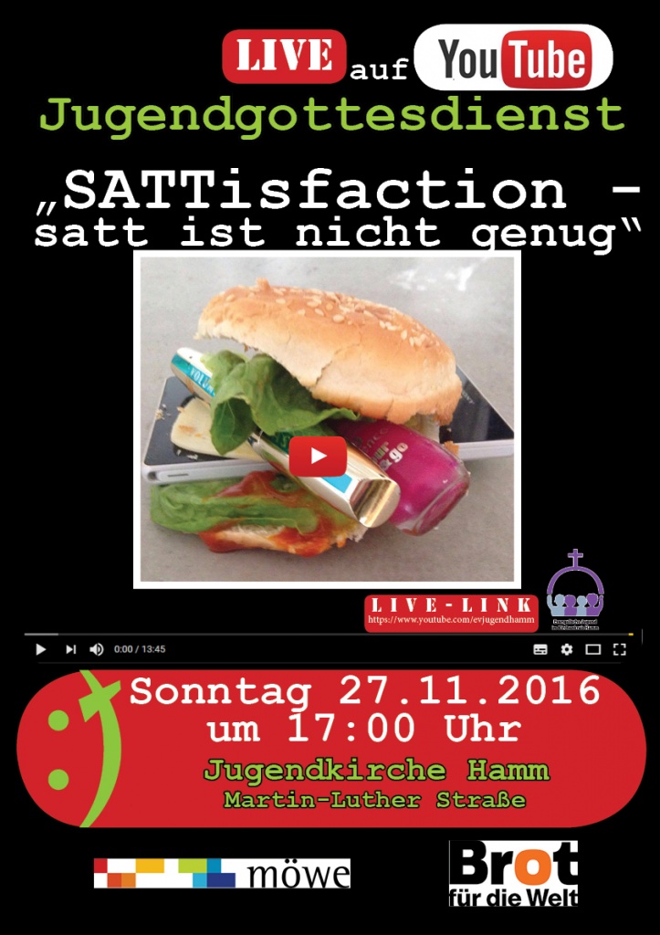 Am 1. Advent (27.11.2016) um 17 Uhr feiern Jugendliche aus Hamm einen Gottesdienst, an dem alle über You-Tube teilnehmen können. Die diesjährige Aktion „5000 Brote-Konfis backen Brot für die Welt“ wird damit beendet und geht nahtlos in die 58. Brot für die Welt-Aktion über.