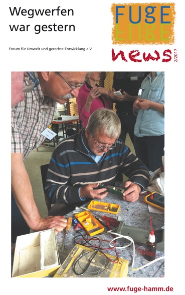 Wir stellen unser Projekt „Nachhaltig konsumieren – Ressourcen schonen“ vor, das im August 2017 begann. Wir blicken auf den Eine-Welt- und -Umwelttag 2017 zurück, der unter dem Motto „Wegwerfen war gestern“ stand. Es gibt einen Einblick in die neusten Entwicklungen des Repair-Cafés im CVJM Hamm und in unser zweites großes Projekt rund um die Mitmach-Ausstellung „Unser alltäglicher Müll“, das im November an den Start gegangen ist. Es geht hier um den wirtschaftlichen Faktor „Müll“ im Vergleich Deutschland und Brasilien. Siehe auch Nachhaltige Produktion braucht verbindliche Regeln! von Eva-Maria Reinwald!
