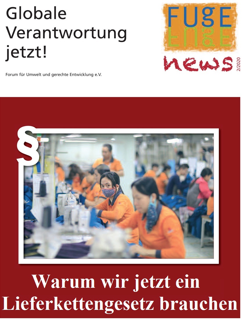 Die Corona-Pandemie hat uns gezeigt: mehr Transparenz und vor allem Verantwortung entlang der Lieferkette unserer Produkte ist wichtig. Für die Produzenten sogar überlebenswichtig. „Social Distancing“ zum Schutze der anderen, und keine soziale Distanz, die uns den Rest der Welt vergessen lässt, ist heute wichtiger denn je. Deshalb informieren wir auch mit dieser Ausgabe der FUgE news unter anderem über die Kampagne „Lieferkettengesetz“ (S. 25) und die eingeschränkten Handlungsspielräume der Zivilgesellschaft Brasiliens – Shrinking Spaces. (S. 28)