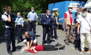 Die Teilnehmer berichteten von Fesselungen in Handschellen, zwei wurden zu Boden gestoßen, insgesamt drei Personen wurden verletzt. Die Polizei trat äußerst aggressiv auf und es wurde von ihr kein Versuch unternommen, die Lage zu deeskalieren.