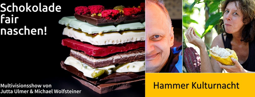 Im Anschluss an die 45-minütige Präsentation kann mit den beiden Referent*innen diskutiert werden. Zudem bieten der Weltladen Hamm und das Forum für Umwelt und gerechte Entwicklung eine Verkostung schokoladenhaltiger Produkte an.