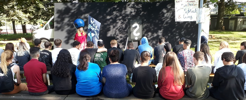 Stationen der Tournee der Straßentheatergruppe Schluck&weg 2023 unter https://bukopharma.de/de/strassentheater-menu/aktuelle-tournee