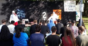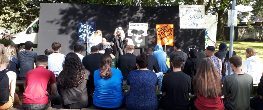 Zu den Vorführungen der Straßentheatergruppe Schluck&weg der BUKO-Pharma-Kampagne „Im Schatten der Pandemie“ laden Elisabeth-Lüders-Berufskolleg und FUgE Hamm ein. Das 20-minütige Stück mit viel schwarzem Humor und schrillen Kostümen wird ab 9.00 Uhr drei Mal im ELB Hamm aufgeführt. Dazwischen kann das Publikum sich über die BUKO-Pharma-Kampagne und ihre neuste Studie zu den Folgen von Covid-19 für die Gesundheitsversorgung in Ghana, Südafrika, Peru und Nordrhein-Westfalen informieren.