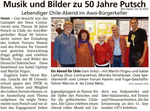 2023-10-04_WA_Musik und Bilder zu 50 Jahre Putsch Previous Veröffentlicht 28.11.2023 in 1607 × 1196 in 30.09.2023: Chile: 50 Jahre Gewalt, Kultur, Widerstand