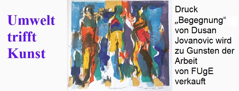 Zum 25jährigen Jubiläum des Forums für Umwelt und gerechte Entwicklung (FUgE) gibt eine Besonderheit. Der überregional bekannte Hammer Künstler Dusan Jovanovic stellt exklusiv einen limitierten Druck des Bildes „Begegnung“ zu einem besonderen Preis von 125,- € zur Verfügung. Die Erlöse aus diesem Verkauf werden direkt in die Umweltprojekte von FUgE investiert, die das Ziel verfolgen, nachhaltigen und ressourcenschonenden Konsum und gleichzeitig eine entwicklungspolitische Bildungsarbeit zu fördern.