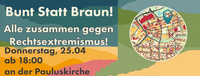 Dieses Bündnis ruft zum zweiten Mal zur Demonstration für eine demokratische und vielfältige Zukunft auf. Geplant ist ein ca. 45-minütiger Demonstrationszug, der an der Pauluskirche beginnt und endet.