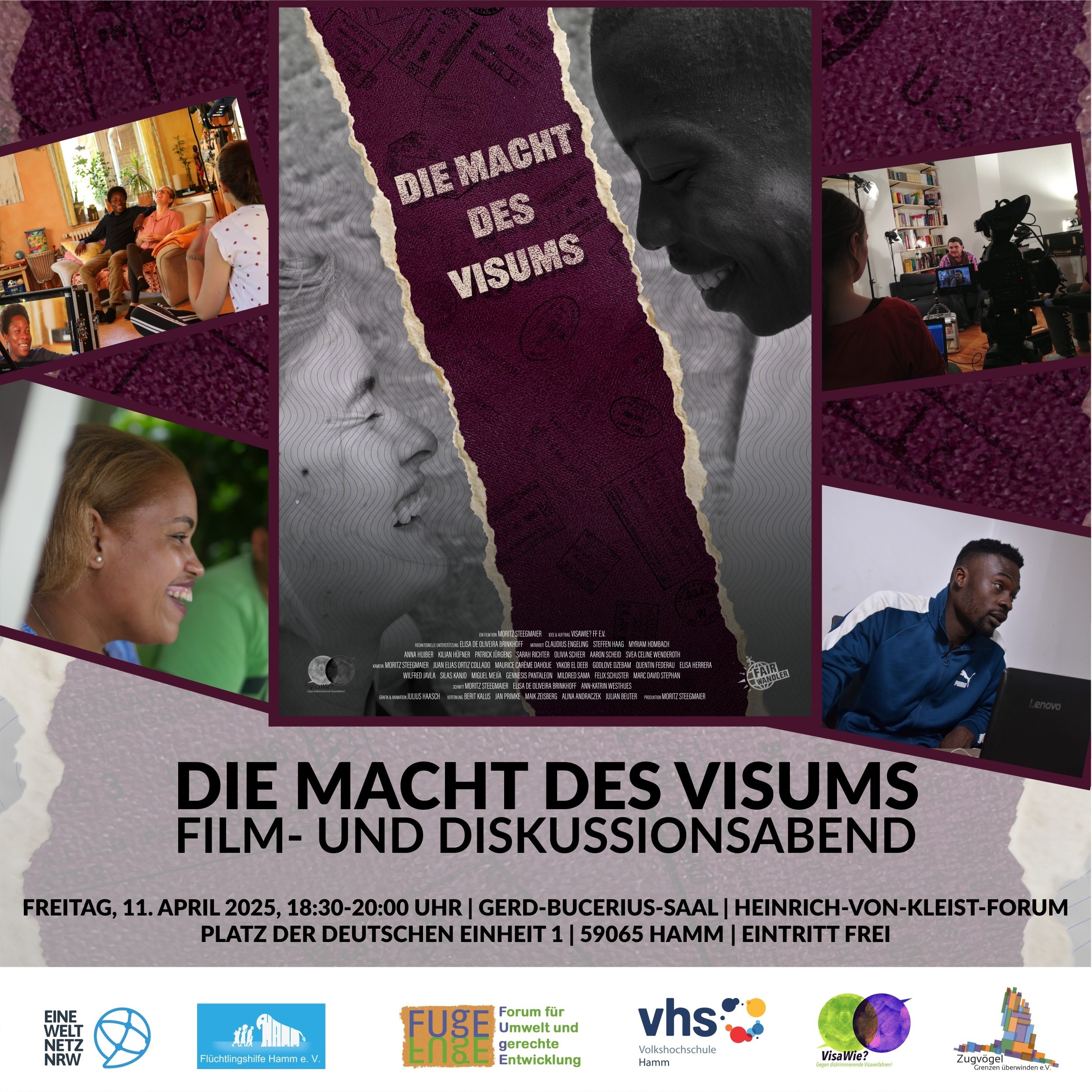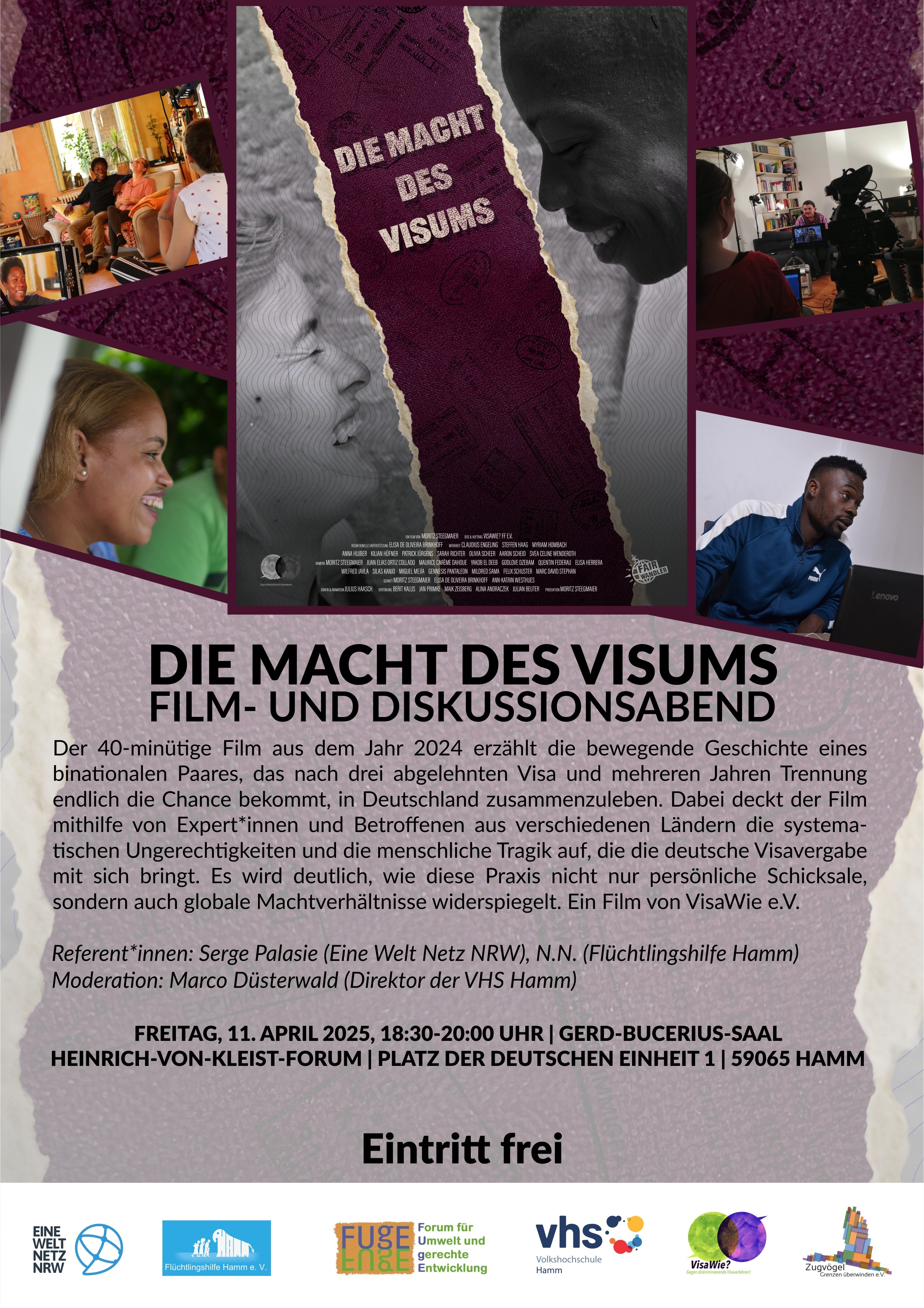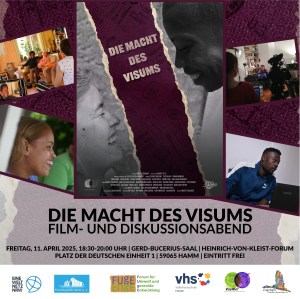 Eine Welt Netz NRW, FUgE, Flüchtlingshilfe Hamm und die Volkshochschule Hamm laden zum Film- und Diskussionsabend „Die Macht des Visums“ am Freitag, 11. April 2025, 18.30 Uhr, in den Gerd-Bucerius-Saal im Heinrich-von-Kleist-Forum ein.