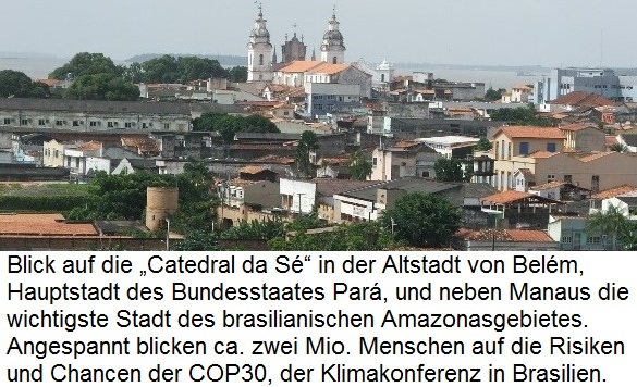 Andererseits verursachen solche Konferenzen enorme CO2-Emissionen für Baumaßnahmen und Reisen sowie Aufnahme der Delegierten aus aller Welt. Belém, eine Stadt von ca. 2 Millionen Einwohnern und umgeben von Wasser, ist mit ihrer mangelhaften Infrastruktur, von Müllabfuhr, Busstationen und Hafen in der Guajará Bucht für die Aufnahme von über 70.000 Menschen für zehn Tage mehr als überfordert.