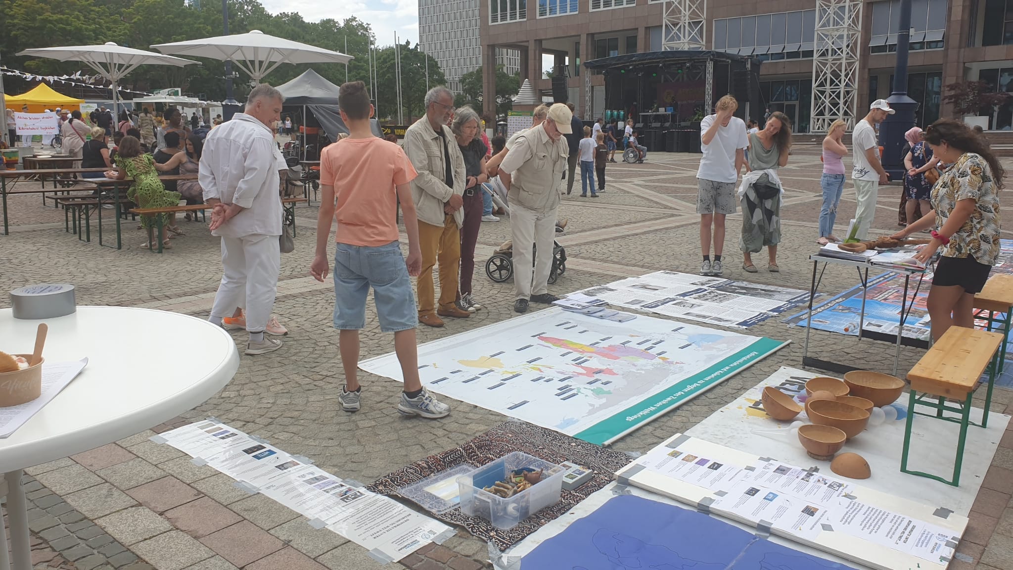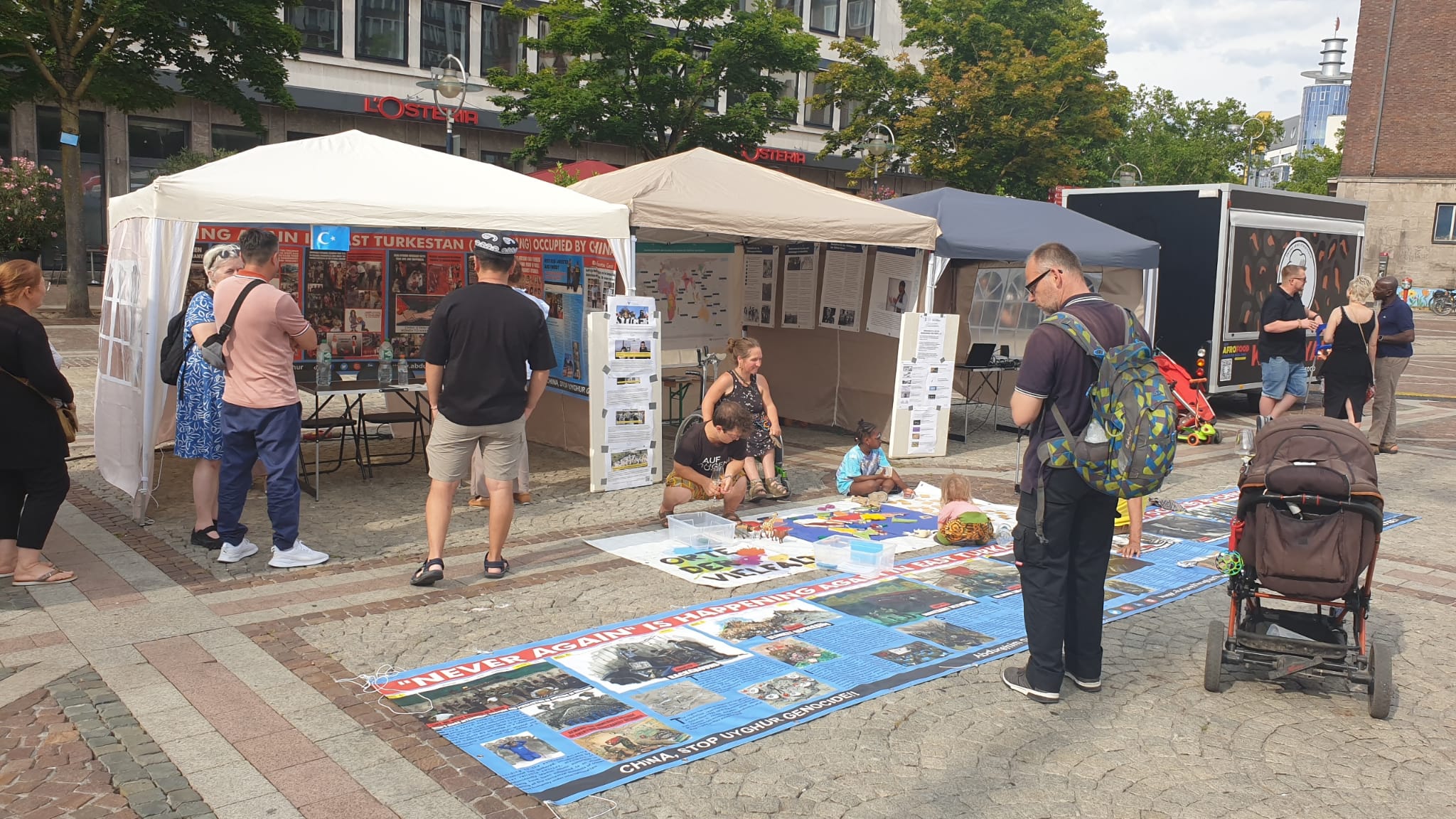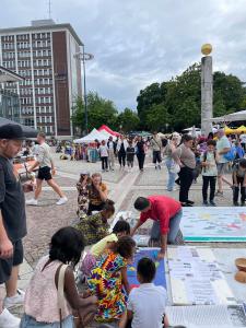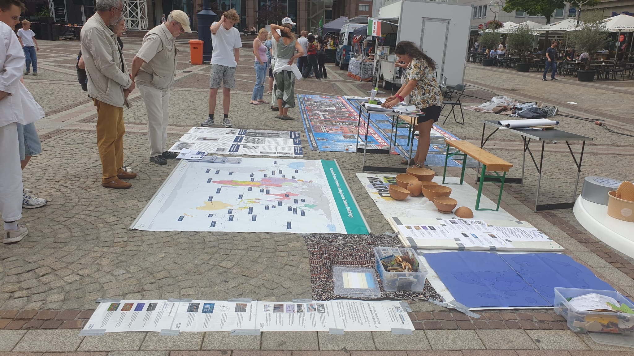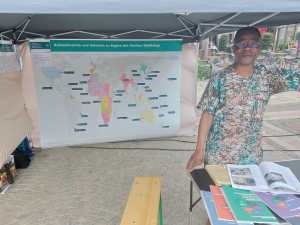 Dabei sind u.a. die Eine-Welt-Promotor*innen Remonda Balje (Regionalpromotorin, Welthaus Dortmund) und die Fachpromotoren Serge Palasie (Eine Welt Netz NRW), Bunmi Bolaji (DARF) und Marcos A. da Costa Melo (FUgE Hamm). Sie befassen sich am ihrem Infostand mit der Lage der Demokratie Weltweit u.a. der Uiguren in China, der Ausstellung „Die Dritte Welt im Zweiten Weltkrieg“ mit dem Schwerpunkt auf Afrika und der Video-Collage „8. Mai 1945 – Unsere Geschichte zählt“ – Europas vergessene Befreier. Auch für Kinder gibt es spannende Aufgaben. Sie können am Stand das Afrika-Puzzle lösen oder Wassertrommel spielen.