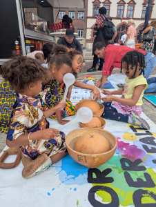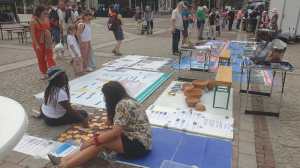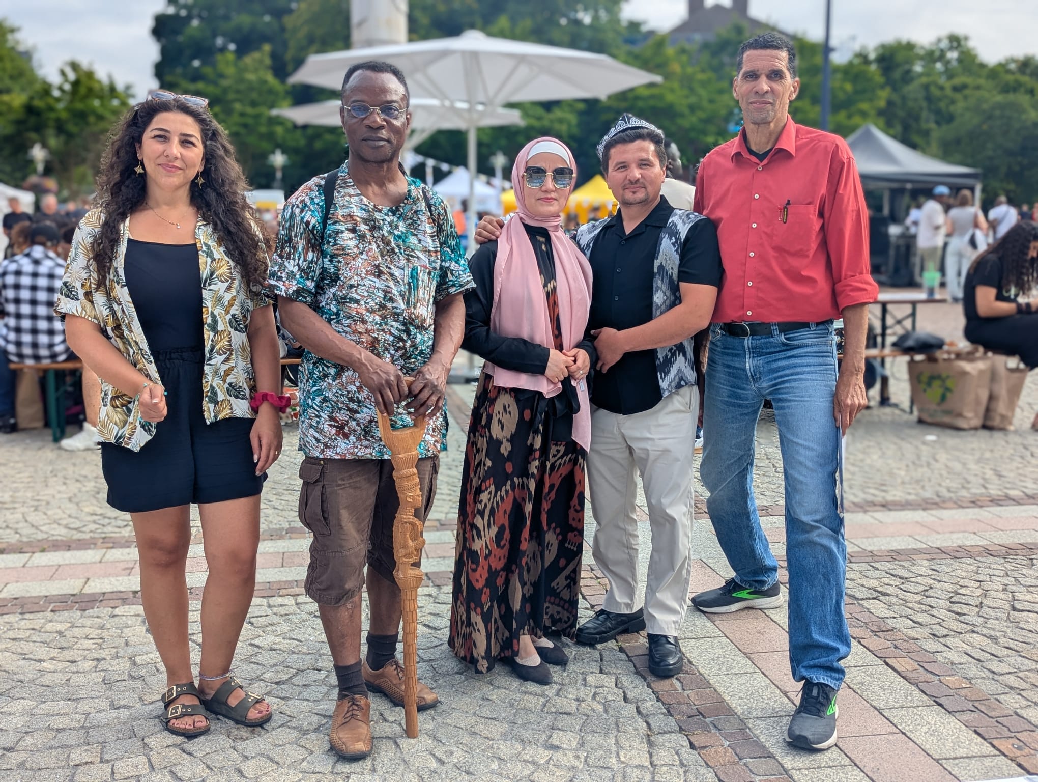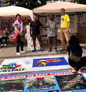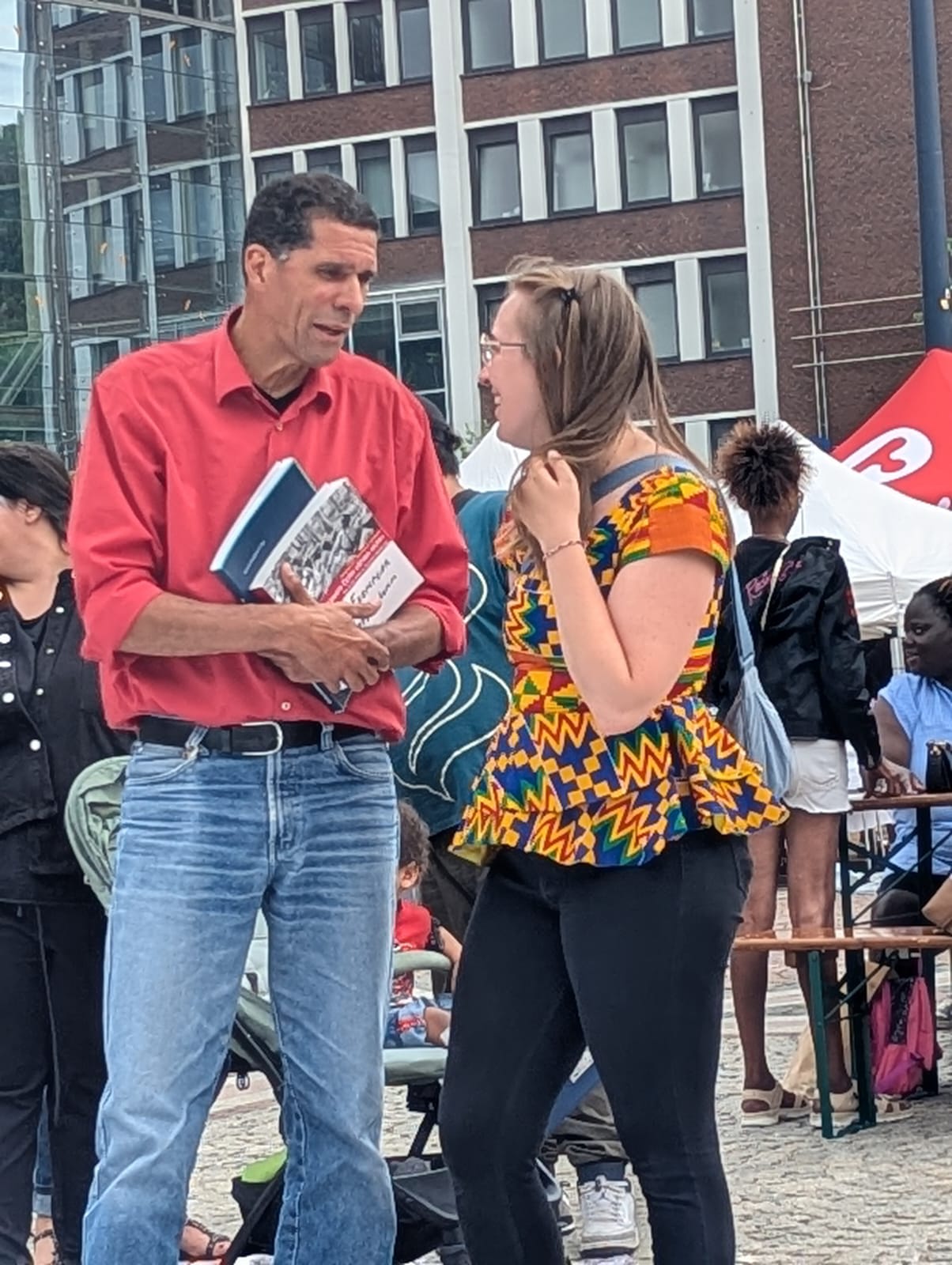 Dabei sind u.a. die Eine-Welt-Promotor*innen Remonda Balje (Regionalpromotorin, Welthaus Dortmund) und die Fachpromotoren Serge Palasie (Eine Welt Netz NRW), Bunmi Bolaji (DARF) und Marcos A. da Costa Melo (FUgE Hamm). Sie befassen sich am ihrem Infostand mit der Lage der Demokratie Weltweit u.a. der Uiguren in China, der Ausstellung „Die Dritte Welt im Zweiten Weltkrieg“ mit dem Schwerpunkt auf Afrika und der Video-Collage „8. Mai 1945 – Unsere Geschichte zählt“ – Europas vergessene Befreier. Auch für Kinder gibt es spannende Aufgaben. Sie können am Stand das Afrika-Puzzle lösen oder Wassertrommel spielen.