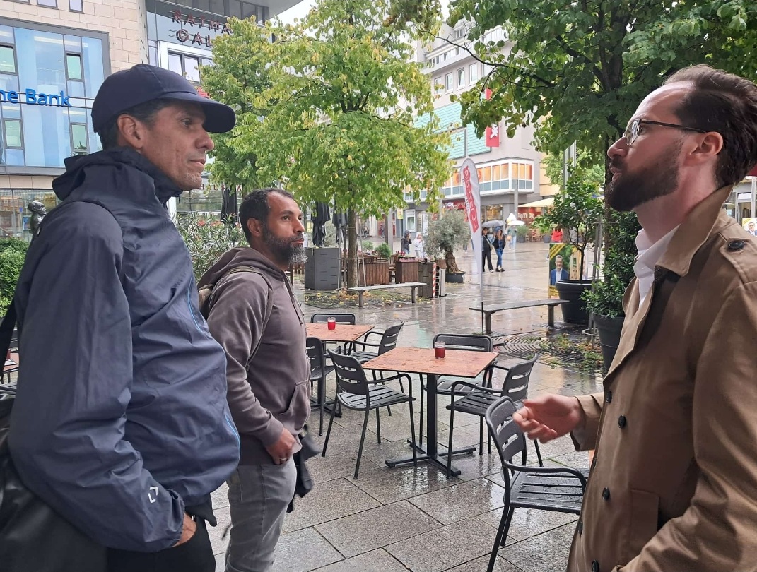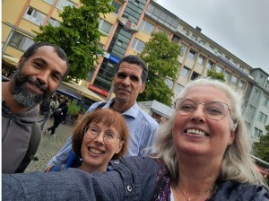 Nach der Filmvorführung im KKBK bekommen Marcos da Costa und Serge Palasie eine Stadtführung zur Kolonialzeit in Hagen durch Pascal Pusch, ehemals Kollege von Fabian Fechner an der Fernuni, und heute Europabeauftragter der Stadt Hagen.