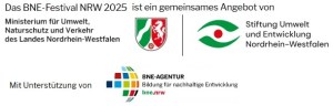 Das BNE-Festival NRW ist eine gemeinsame Veranstaltung vom Ministerium für Umwelt, Naturschutz und Verkehr des Landes Nordrhein-Westfalen und der Stiftung Umwelt und Entwicklung Nordrhein-Westfalen mit Unterstützung der BNE-Agentur NRW.