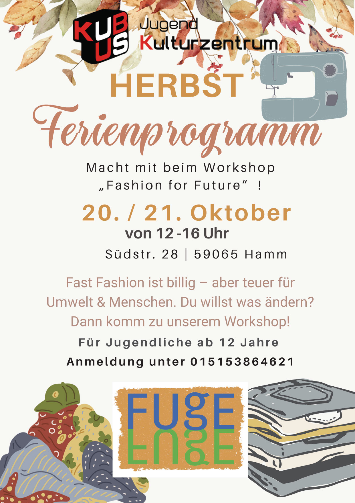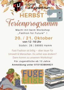 Damit möchten wir uns nicht abfinden! Es braucht Auswege. Deswegen möchten wir Euch diesem zweitägigen Workshop einladen. Hier könnt ihr euch aktiv für eine „Fashion for Future“ einsetzen. Denn jede*r von uns kann ganz konkret etwas verändern.