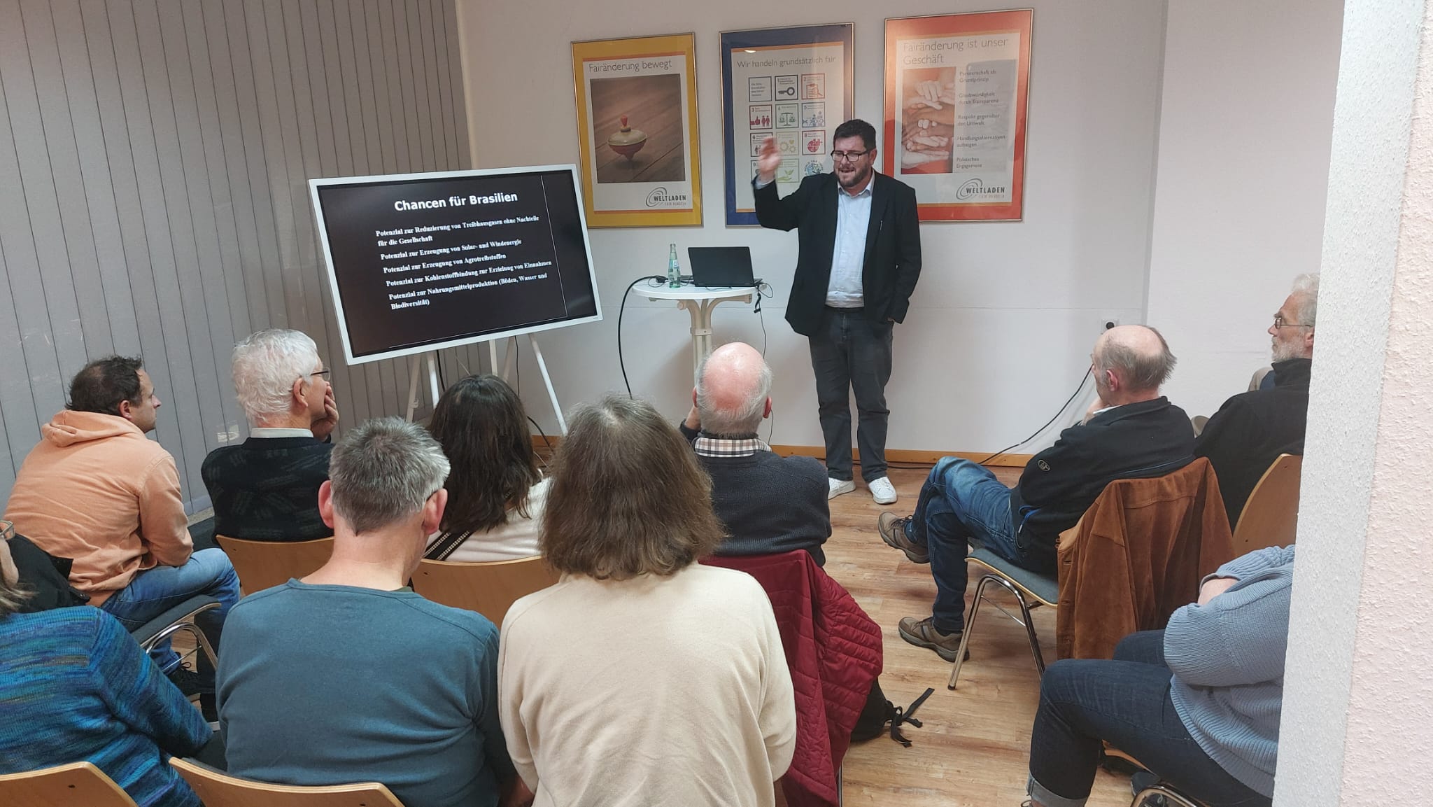 Der Referent ist Politik- und Sozialwissenschaftler an der Universidade Federal da Fronteira Sul, die sich schwerpunktmäßig mit nachhaltiger Landwirtschaft und Agrarökologie beschäftigt.
