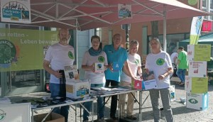 => Die Steuerungsgruppe Fairtrade Town Werl und der Klimatreff sammelten gemeinsam alte Handys und machten gleichzeitig auf die Folgen für Mensch und Natur in den Produkionsländern aufmerksam. Foto: Steuerungsgruppe Werl