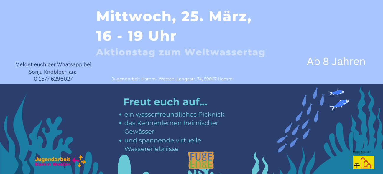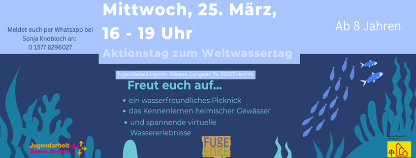 Am Mittwoch, den 25. März 2026, laden wir von 16–19 Uhr herzlich zu unserem Aktionstag rund um das Thema Wasser ein. Gemeinsam verbringen wir einen abwechslungsreichen Nachmittag mit einem wasserfreundlichen Picknick, lernen heimische Gewässer kennen und erleben spannende virtuelle Wassererlebnisse.