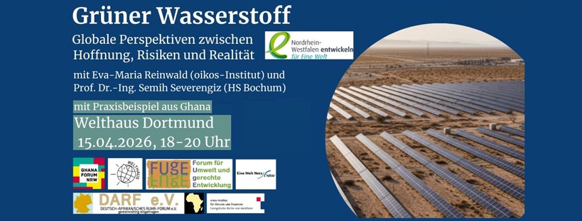 Eine Veranstaltung von Welthaus Dortmund e.V., DARF e.V., Eine Welt Netz NRW e.V., FUgE e.V., Ghana-Forum NRW e.V. und oikos-Institut der EKvW.