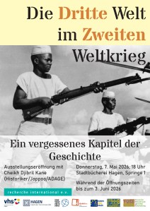 Anlässlich des 81-jährigen Gedenkens an das Ende des Zweiten Weltkrieges lädt die Stadtbücherei Hagen mit ihren Kooperationspartnern zur Eröffnung der Ausstellung „Die Dritte Welt im Zweiten Weltkrieg“ ein.