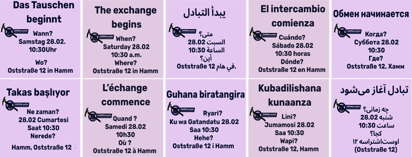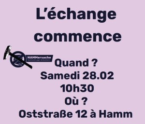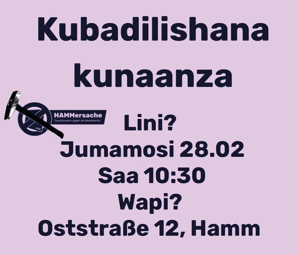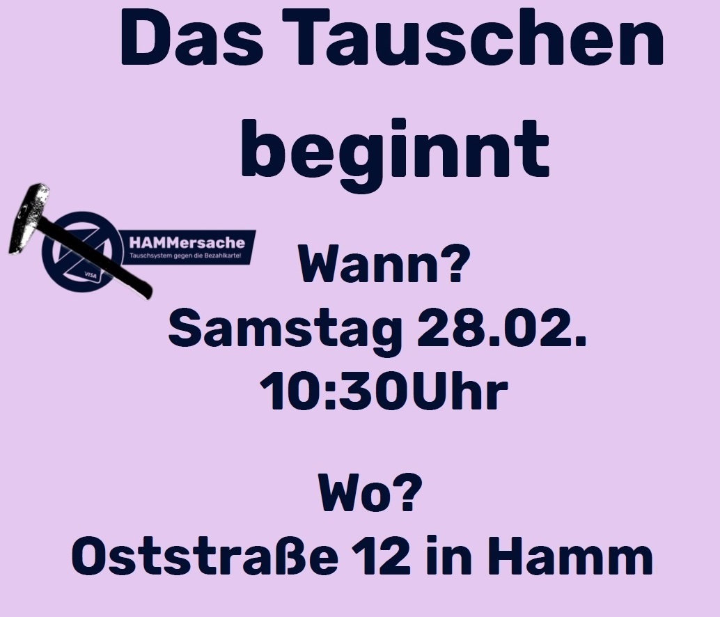 Eine Veranstaltung der Initiative „Hammersache Tauschsystem“ in Kooperation mit dem Forum für Umwelt und gerechte Entwicklung (FUgE) und der Flüchtlingshilfe Hamm.
