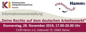 28.11.2019: Deine Rechte auf dem deutschen Arbeitsmarkt - Rechten auf dem deutschen Arbeitsmarkt: Informationsveranstaltung für geflüchtete Menschen sowie Migrantinnen und Migranten.