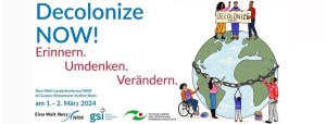 01.-02.03.2024: LaKo NRW – Decolonize NOW! Erinnern Umdenken Verändern - Vorträge, Workshops, Fishbowl- und Foren zu kritischen Reflexionen über postkoloniale Strukturen.