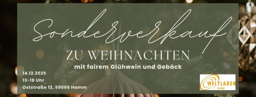 Fair und nachhaltig schenken bereitet Freude. Der Weltladen Hamm bietet am verkaufsoffenen Sonntag einen Sonderverkauf Fairer Produkte in gemütlicher Atmosphäre mit Glühwein und fairem Gebäck an.