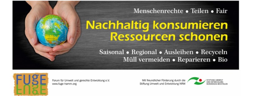 Wir freuen uns, dass wir seit August 2017 dank der Unterstützung durch die Stiftung Umwelt und Entwicklung Nordrheinwestfalen ein neues Projekt durchführen können. Es richtet sich im Schwerpunkt an Kinder und Jugendliche, doch auch Erwachsene werden bei unserem Projekt zum nachhaltigen Konsum und der Schonung von Ressourcen angesprochen.