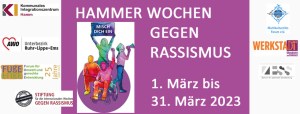 1.-31. März 2023: Hammer Wochen gegen Rassismus - „Hammer Netzwerk rassismuskritischer Arbeit“ mit seinen zahlreichen Aktionen, Lesungen, Vorträgen und Workshops.