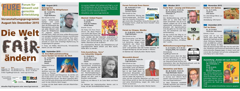 Im zweiten Halbjahr 2015 befasst sich FUgE u.a. mit den Wildpflanzen, der Afrika-Ausstellung, dem Fairen Handel, sowie mit Brasilien, Mexiko, Mosambik, Guinea und dem Baikalsee Sibiriens.